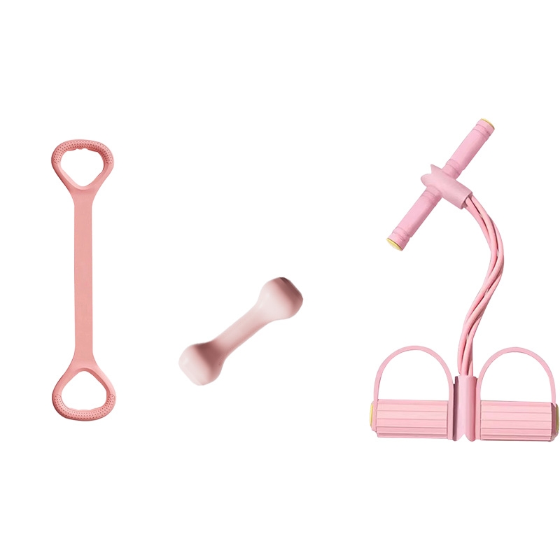 多功能脚蹬拉力器,针对性全身锻炼,打造S型曲线;4根加粗乳胶管,拉力倍增回弹好,随意拉出恢复如初;;1kg小哑铃,适合女士瘦小臂,跳操有氧运动;