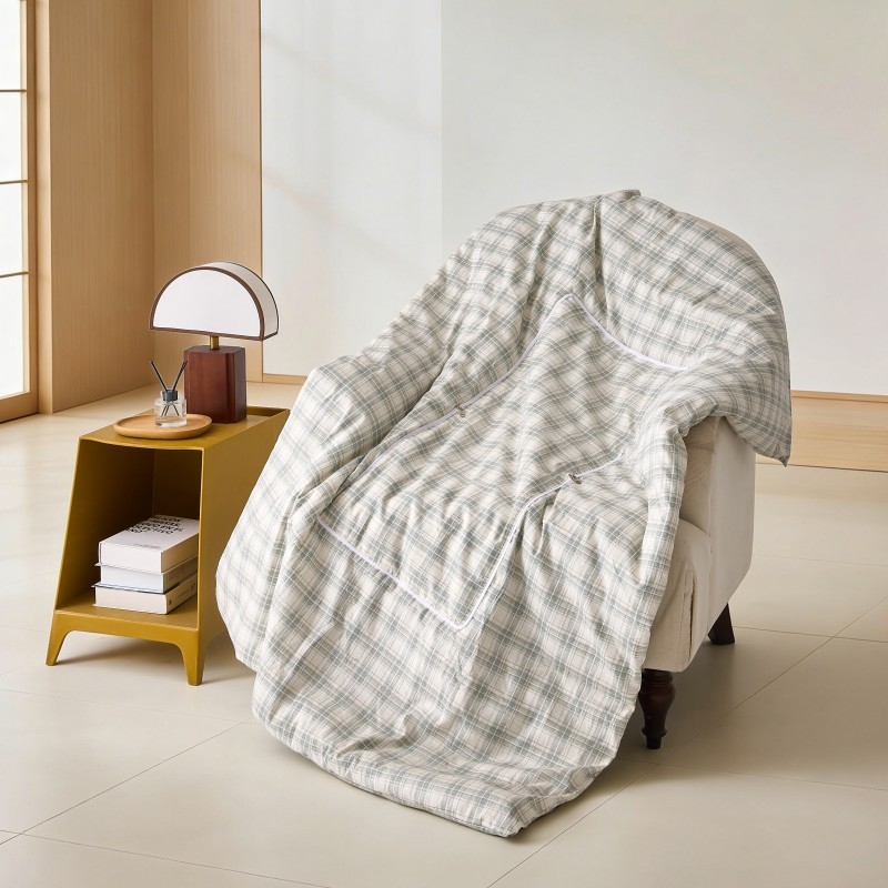 采用精梳棉面料,颜色鲜艳、丰富;填充环保羽丝纤维,轻薄透气,简约而不简单;抱枕被方便收纳,折叠后可作为家居抱枕