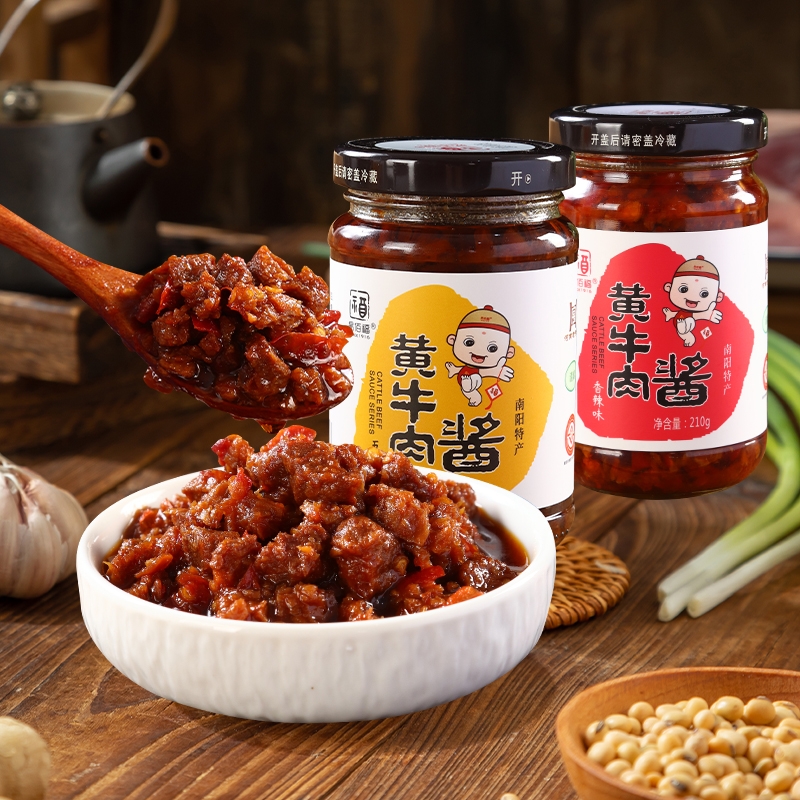 清真食品;河南老字号;南阳非物质文化遗产牛肉酱;精选南阳黄牛,厚切大块牛肉,粒粒分明